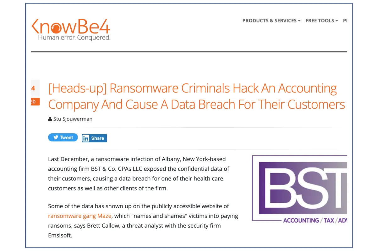 They also offer cyber security training to their client's employees and provide an encrypted platform for clients to share files without the threat of a third party accessing the information.